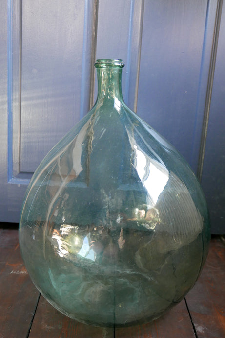 Antique Green Hand blown Glass Demijohn - Large