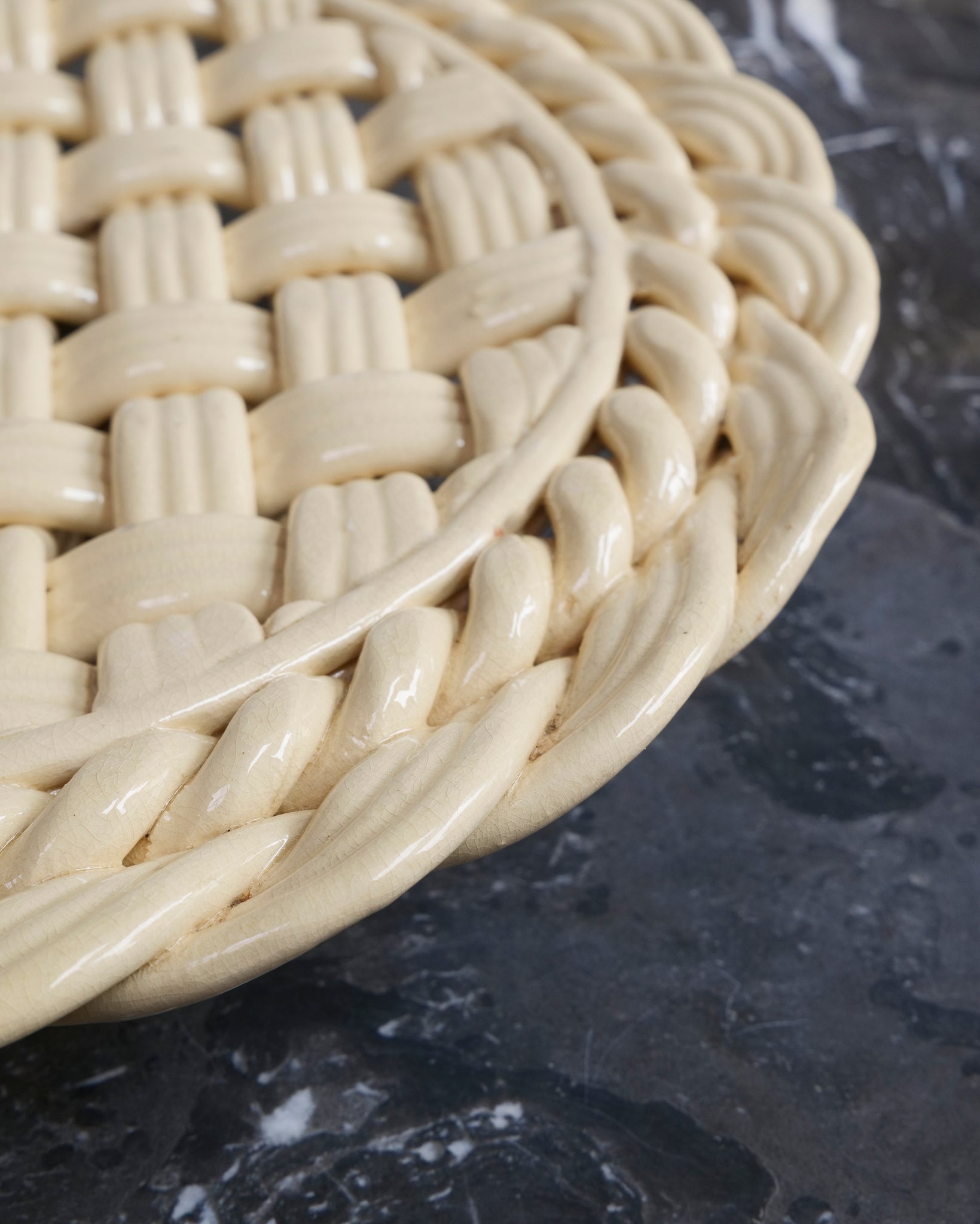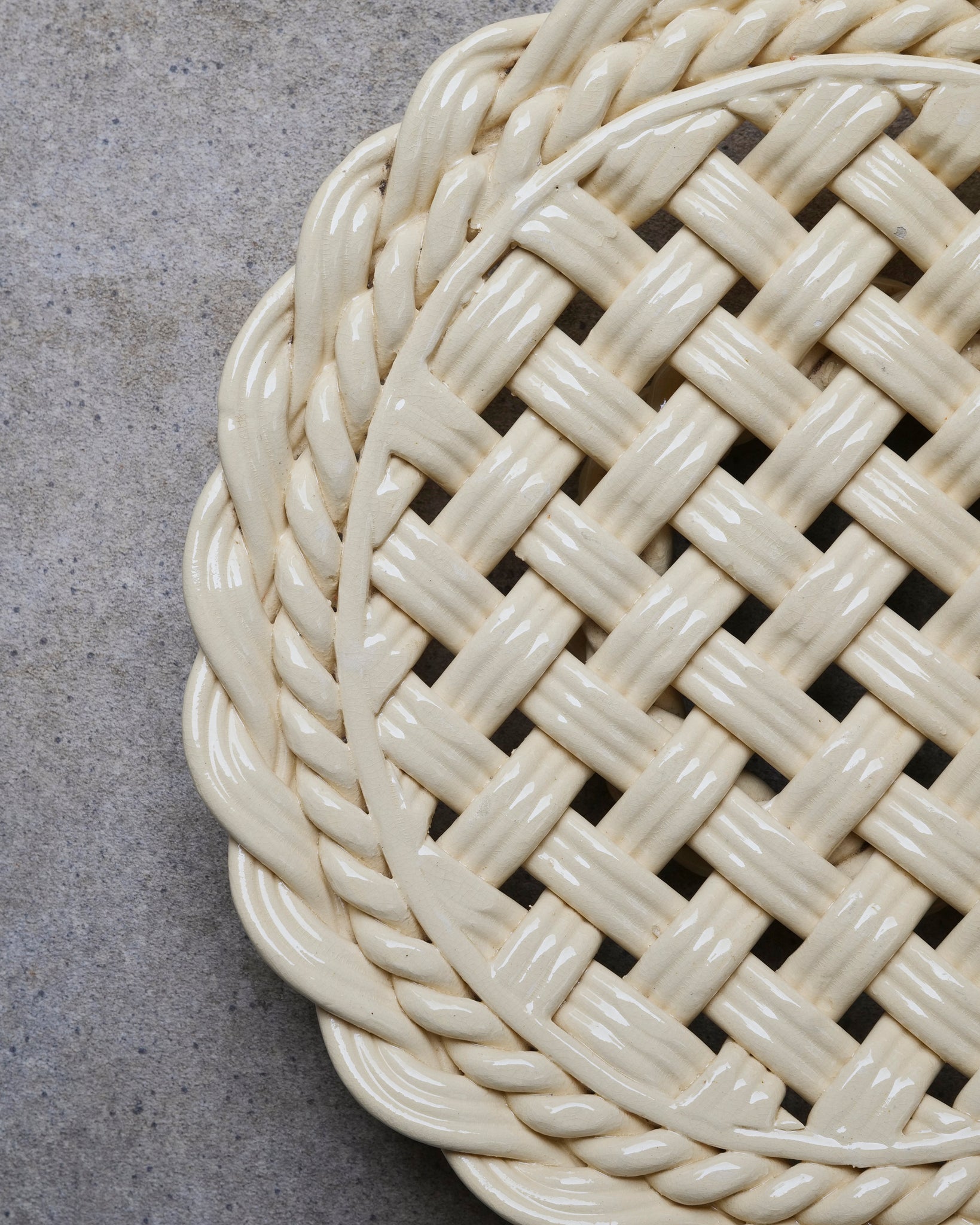 This chunky cream lattice pedestal would be ideal to display fruit or as a stand alone decorative object.