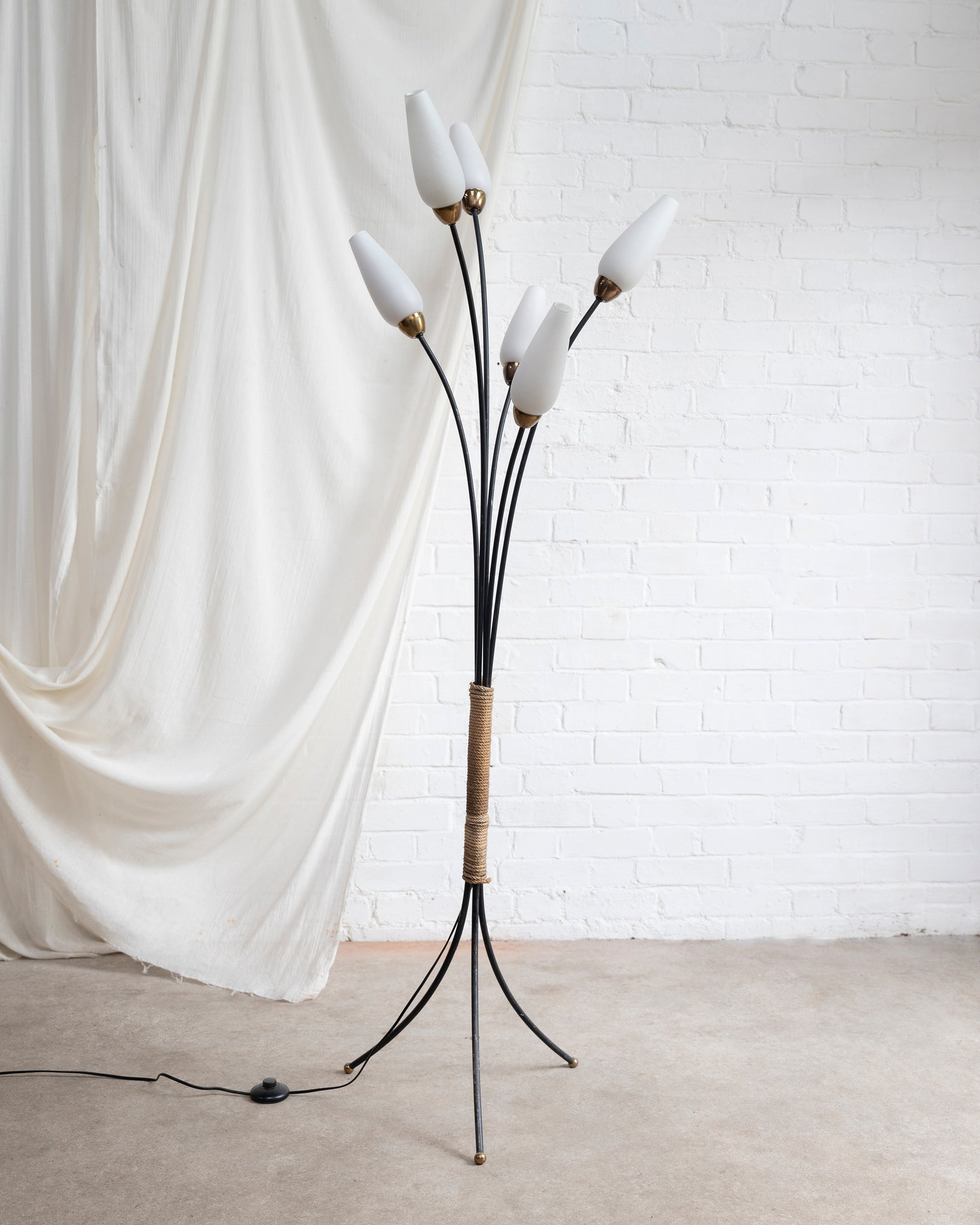 A brilliant French floor lamp with 6 arms and Opaline tulip shades.