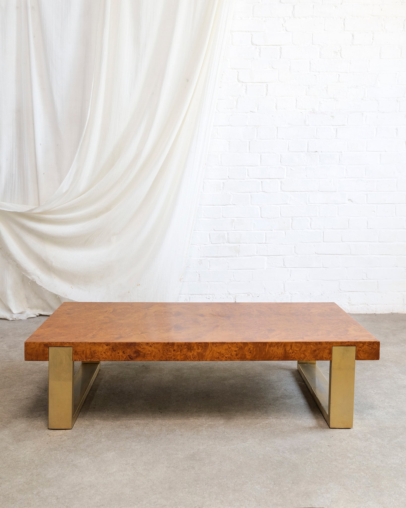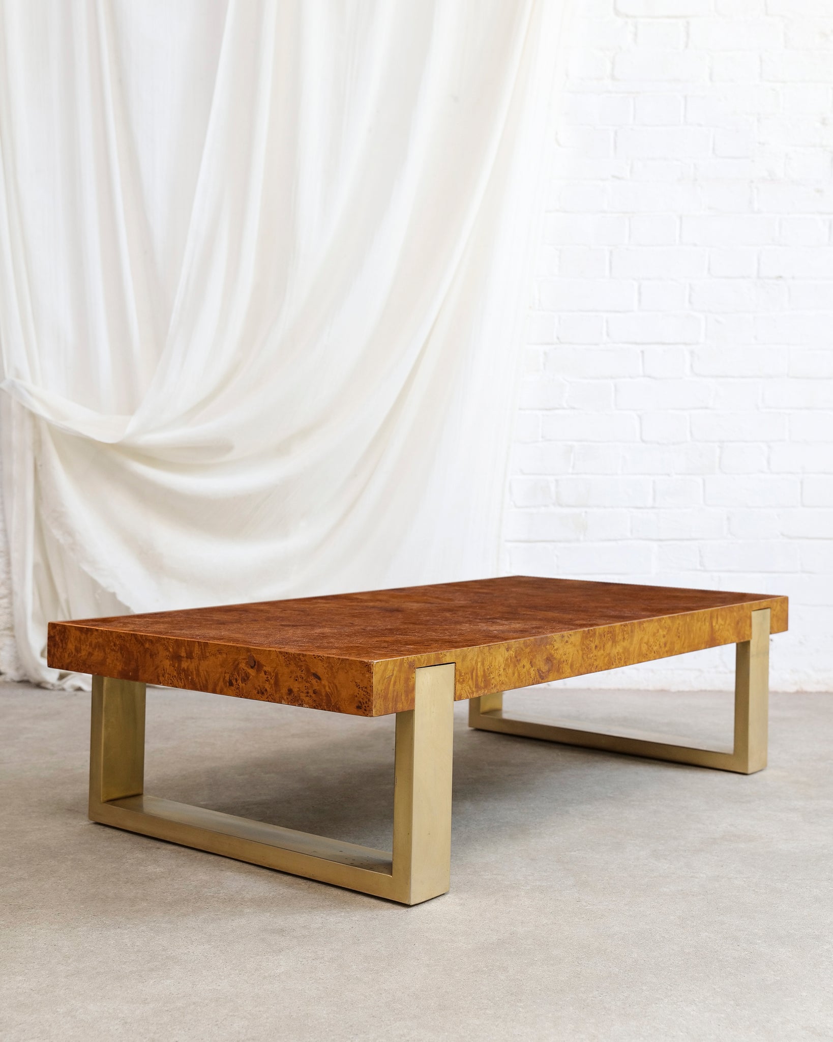 A brilliant Maison Jansen Walnut Veneer Coffee table with Brass legs.