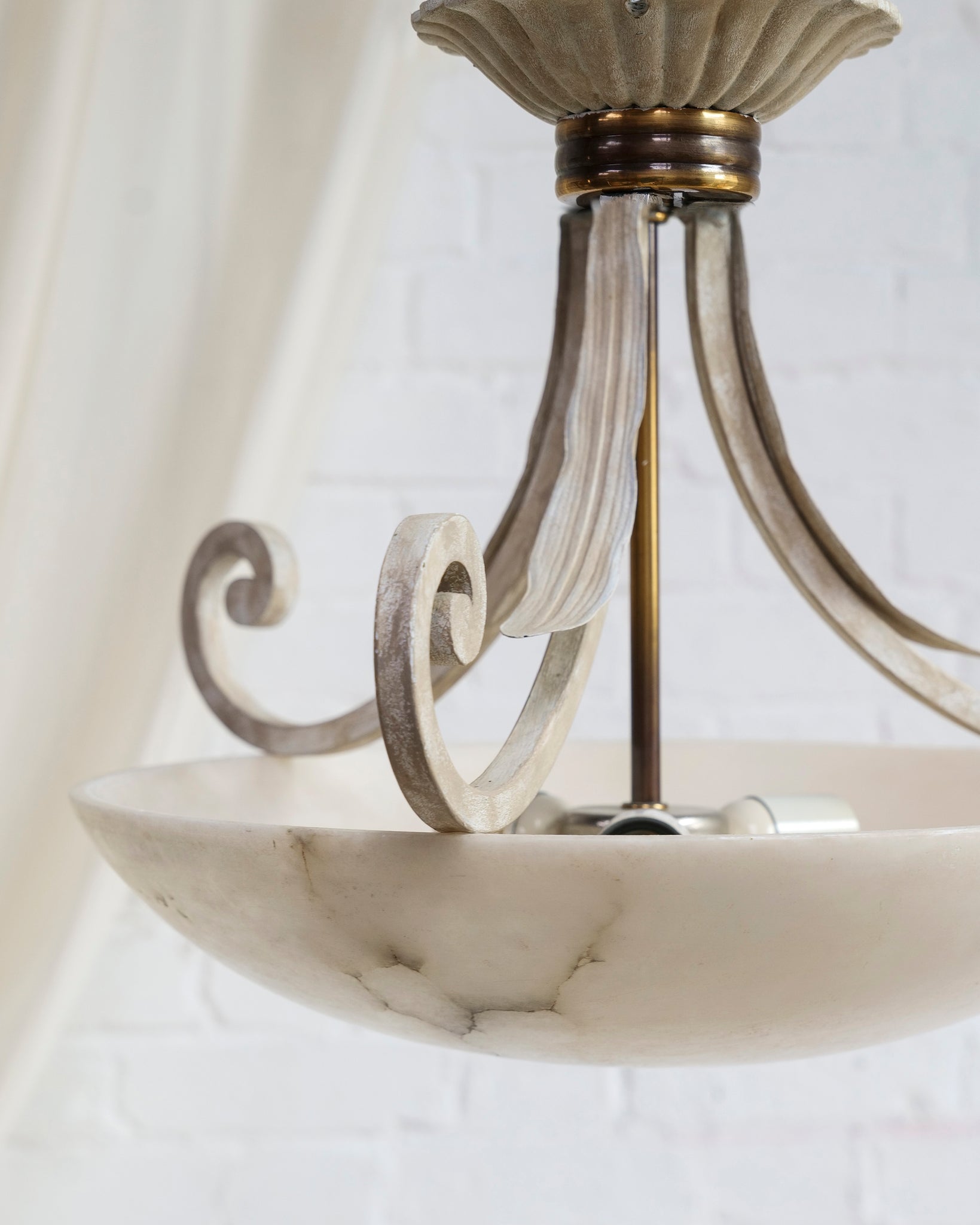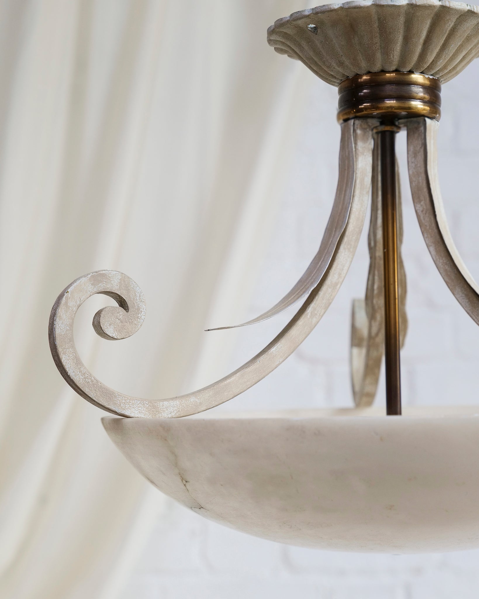 A superb alabaster ceiling pendant with toleware detail at the top.