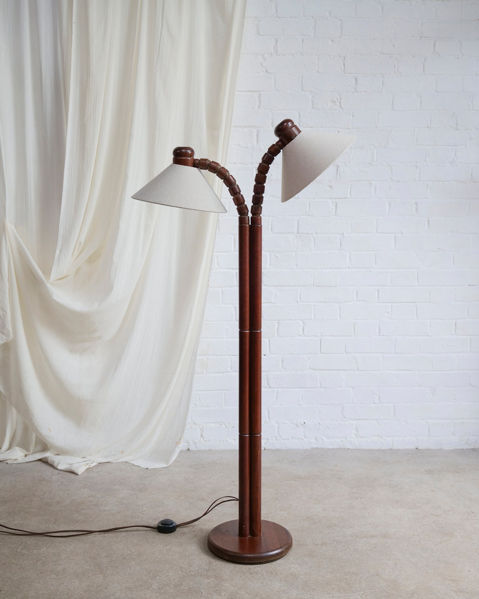 A superb Solbackens Svarveri Solid Pine double headed floor Lamp.