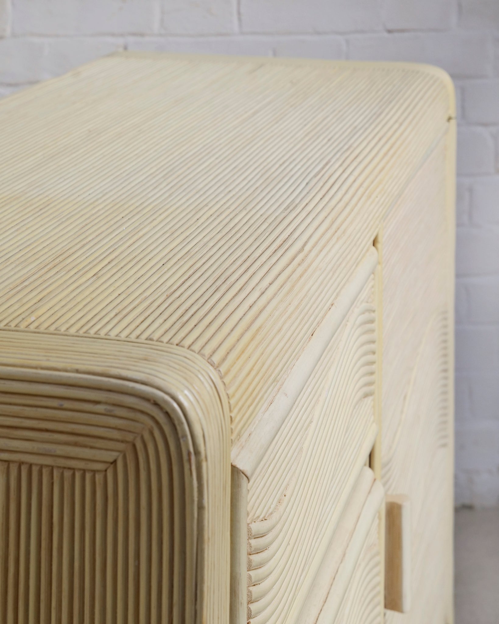 A 1970's cream pencil reed small cabinet with beautiful soft curves.