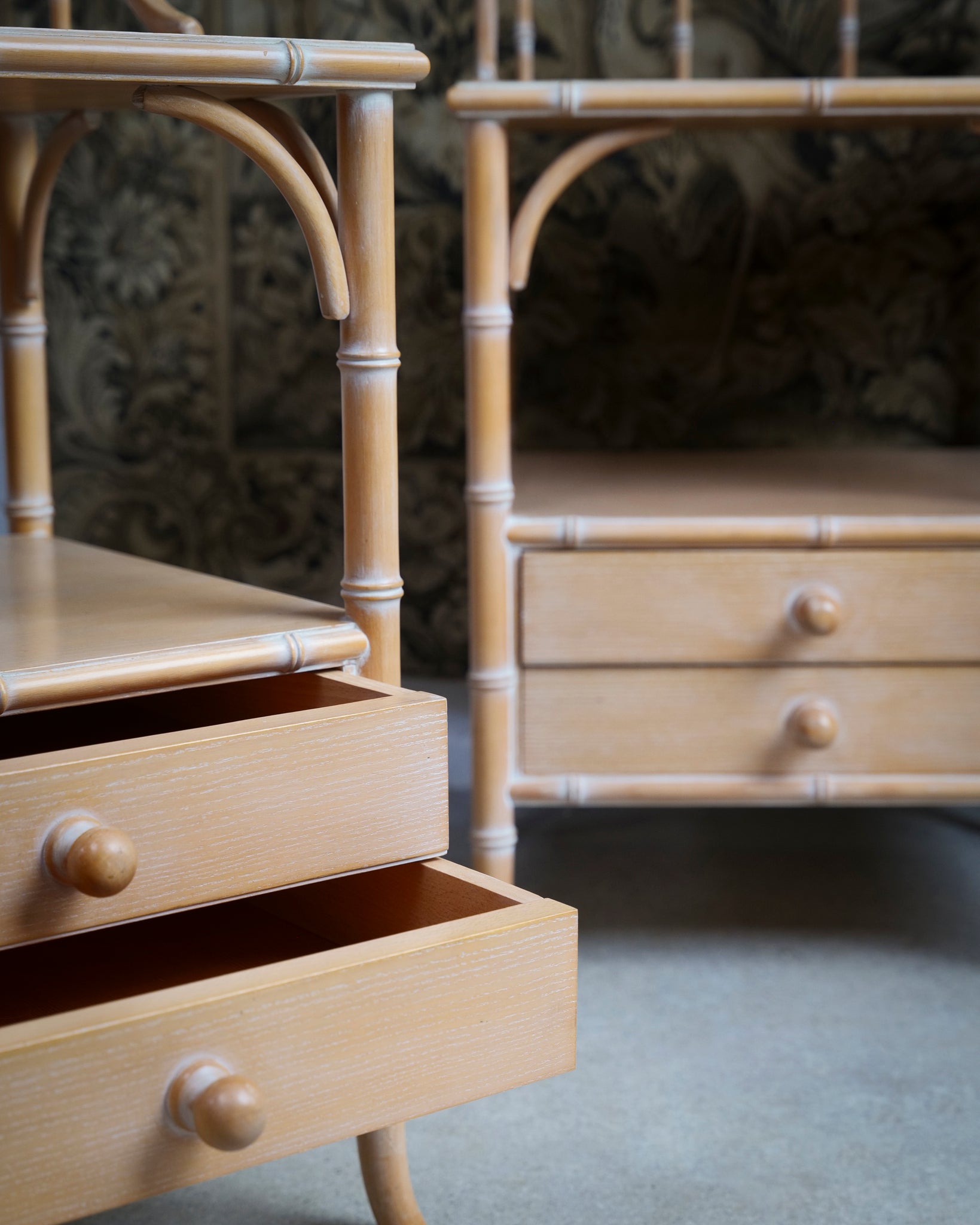 Incredibly well made wooden bedside table with turned faux bamboo legs from Harrods.