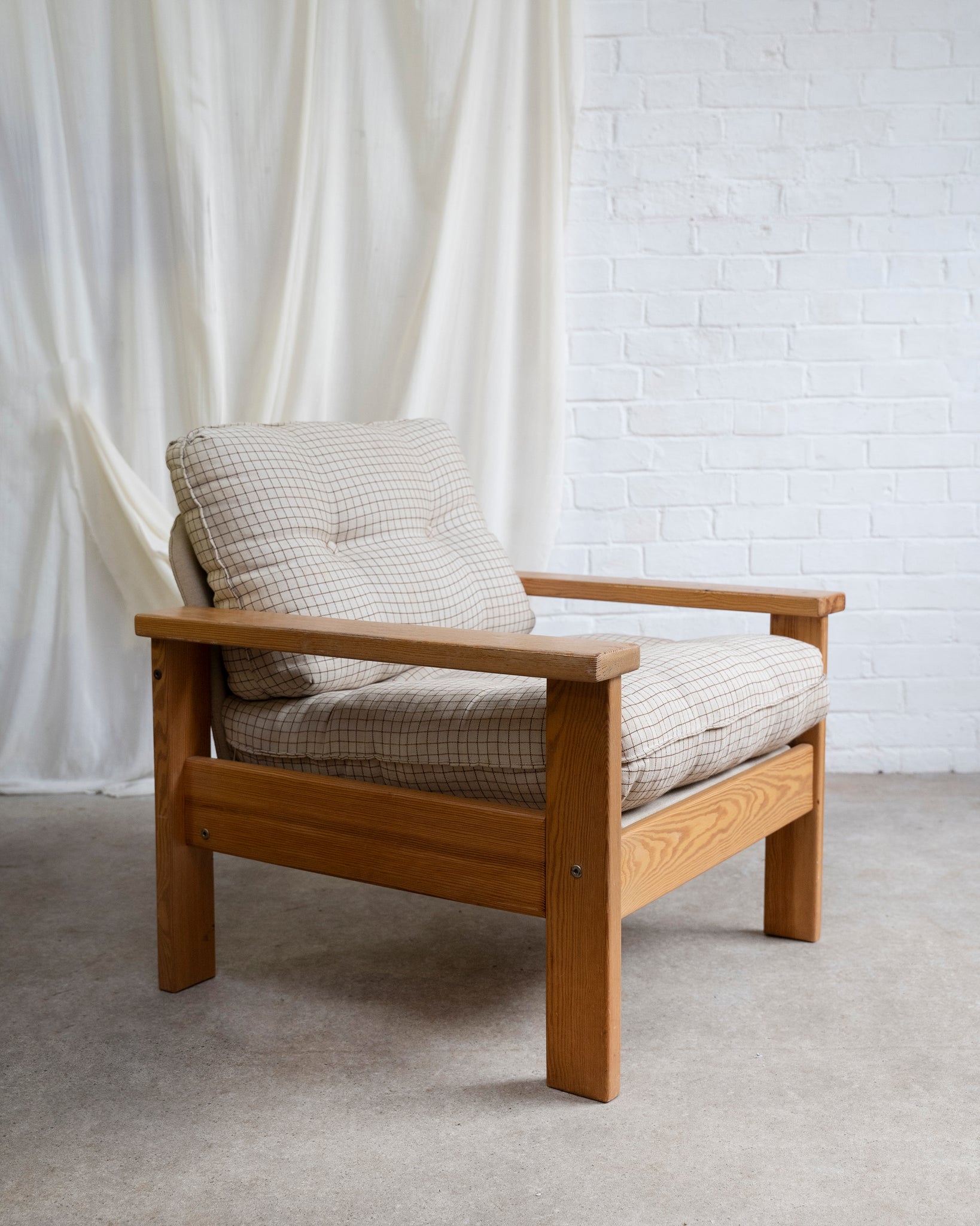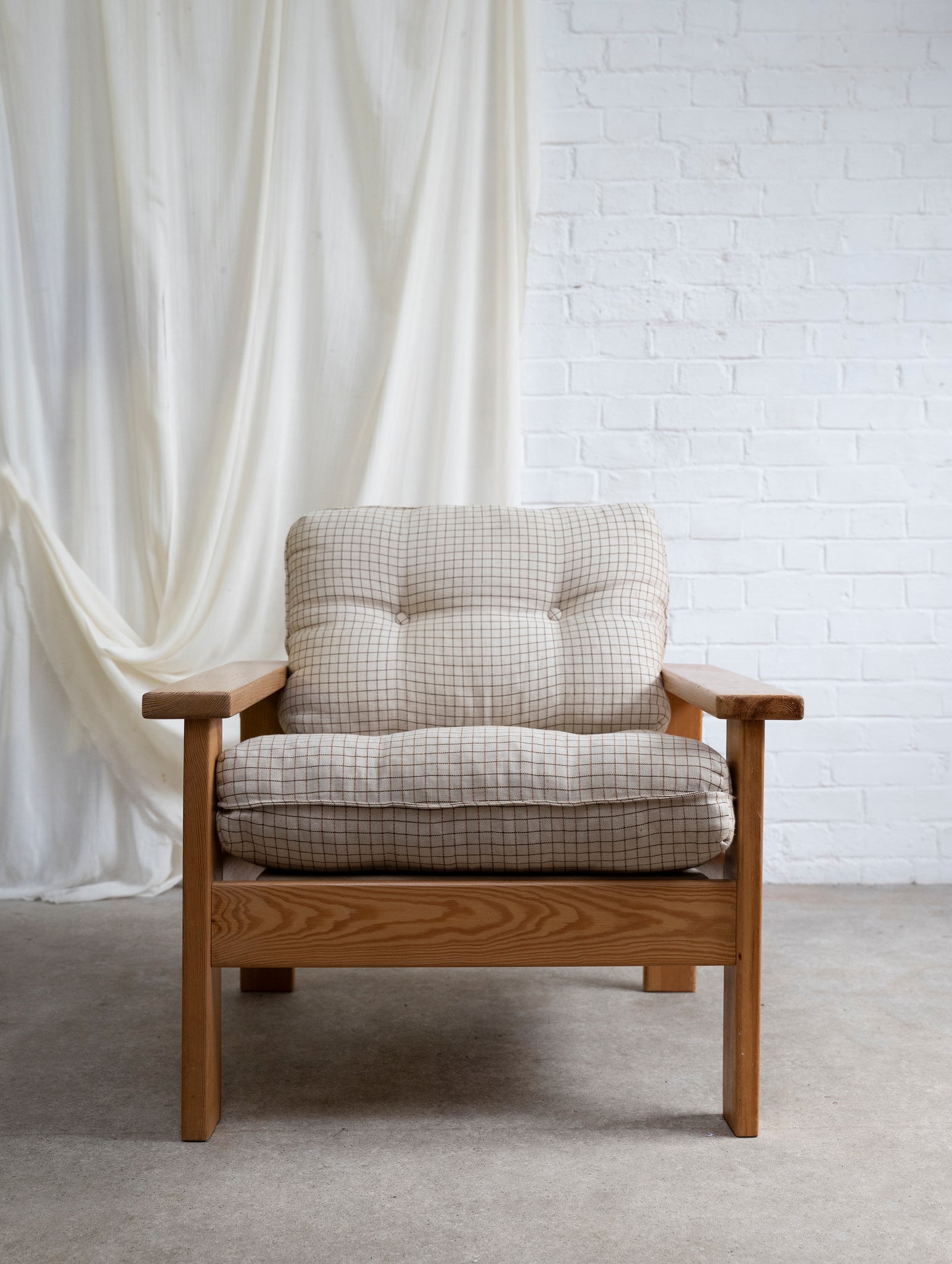 Provided with the original checkered black and white cover, in cotton fabric. 1970s In condition, there are a few faint marks on one side of the seat pad, and a stain on the other side, the faint marks don't detract and we have tried to photograph these, so please check before you purchase.
