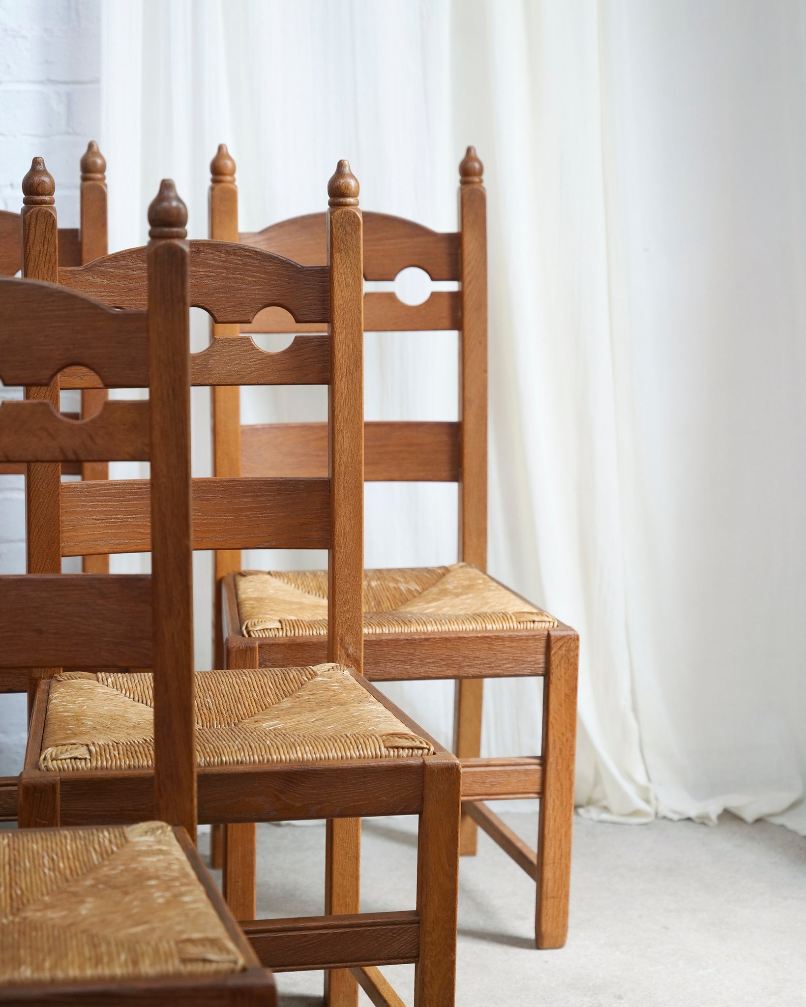 Set of 6 Razor Back Dining Chairs With Rush Seats