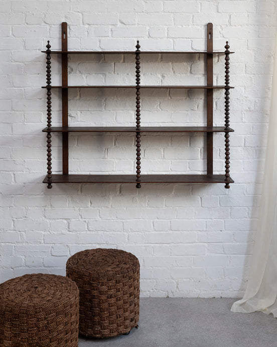 Tall 1970's Bamboo & Smoked Glass Shelving unit