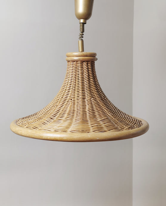 Mid-Century Modern Pull Down Rattan Pendant Lamp