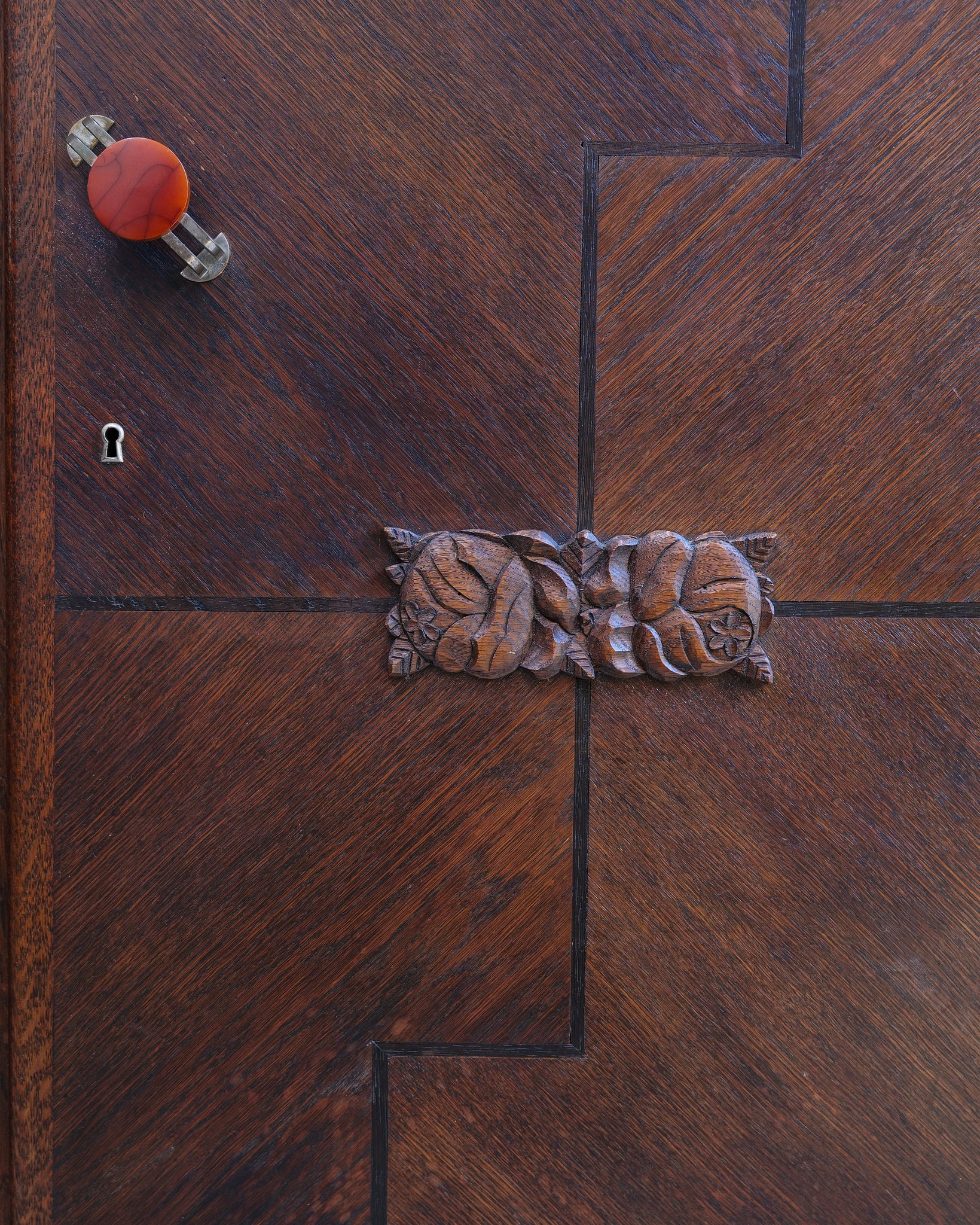 To each panel is a geometric line, and a small carved flower motif. This really is a wonderful piece.